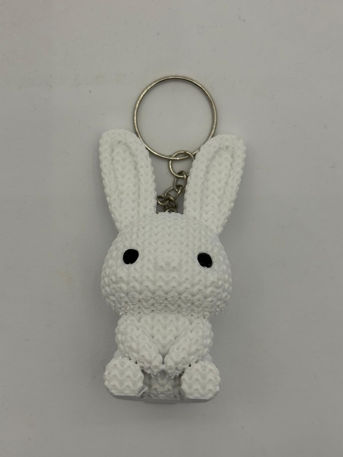 Gestricktes Kaninchen Schlüsselanhänger – süß, leicht und ideal als Geschenk. Verschiedene Farbvarianten sind verfügbar und mit schneller Produktion möglich.
